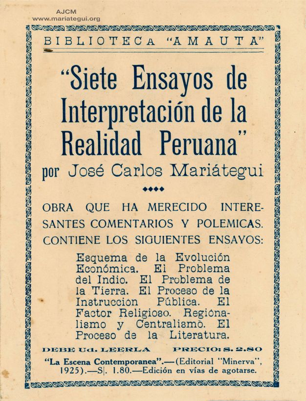 Por eso, reflexionó sobre la necesidad de desarrollar una industria editorial sólida, analizando los problemas que conforman la “cadena de valor del libro”. Realizó comentarios sobre la forma poco rigurosa en que se llevaban a cabo los concursos en el Perú y subrayó, además, la necesidad de desarrollar ferias de libros (“Concursos y premios literarios”1). Sostuvo que la Biblioteca Nacional era la “Cenicienta del presupuesto de la República” y que no existía en el Perú una sola biblioteca bien abastecida que pudiera contribuir a producir un mejor conocimiento sobre la realidad (Mariátegui, J. C. (1974b). Temas de educación. Biblioteca Amauta.). Además, sustentó que las librerías existentes no tenían una organización técnica y que todo era muy precario y desordenado (Mariátegui, J. C. (1974b). Temas de educación. Biblioteca Amauta.). Al mismo tiempo, escribió sobre el alto precio de la tarifa postal (“El índice del libro”, “El problema editorial”) y, tomando como referencia la feria organizada por Samuel Glusberg en Mar del Plata, buscó proponer el desarrollo de una industria de libros en América Latina para hacerle frente a la hegemonía de las editoriales españolas: “La circulación del libro americano en el continente, es muy limitada e incipiente […]. En lo que concierne a su abastecimiento de libros, los países de Sudamérica continúan siendo colonias españolas”, aseveró con énfasis (Mariátegui, J. C. (1974b). Temas de educación. Biblioteca Amauta.)2.