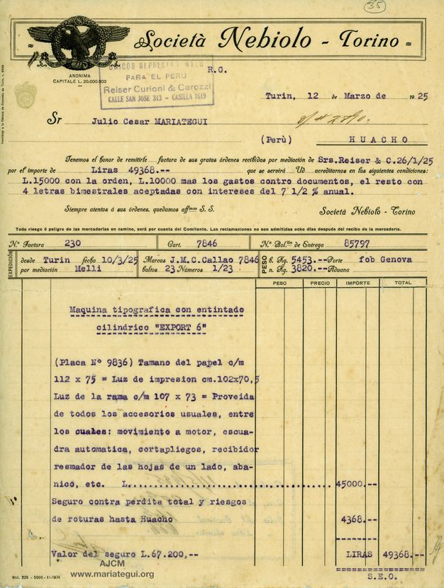 Pese a que esta adquisición no pudo concretarse, Mariátegui no se dio por vencido. En octubre de 1925, junto con su hermano Julio César, fundó la Editorial Minerva, dedicada a la publicación y venta de libros (Pinamonti, E., Mariátegui, J. C. y Escobar, J. (2009, septiembre). Historia de la imprenta y editorial Minerva. Boletín Casa Museo José Carlos Mariátegui, 6-7.). Fue el pintor Emilio Goyburu Baca el encargado de diseñar el logotipo de esa diosa de la sabiduría, las artes y de la estrategia militar. La primera gran acción de la editorial fue la adquisición de la imprenta modelo Export 6 B, de la empresa turinesa Società Nebiolo. Podemos decir que esta máquina, —que se expone hoy de forma permanente en la Casa de la Literatura Peruana— dio un giro tecnológico en la producción del libro en el Perú y, gracias a ella, permitió iniciar un ambicioso plan de publicaciones2. En 1925, en la serie Biblioteca Moderna, Mariátegui publicó su primer libro La escena contemporánea y lanzó al mercado publicaciones de autores peruanos y extranjeros como Manuel Beingolea, José María Eguren, Alcides Espelucín, Luis Guillén, Mariano Iberico, Serafín del Mar, Antenor Orrego, Magda Portal, Luis E. Valcárcel, Máximo Gorki, entre otros.